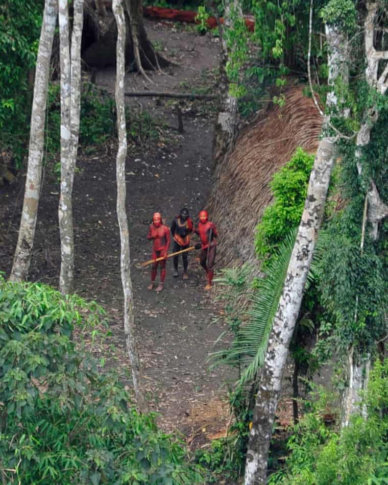 A photo made available on 1 February 2011 by Survival International shows members of an uncontacted tribe in the Brazilian Amazon. Photograph: Gleison Miranda/Funai/EPA